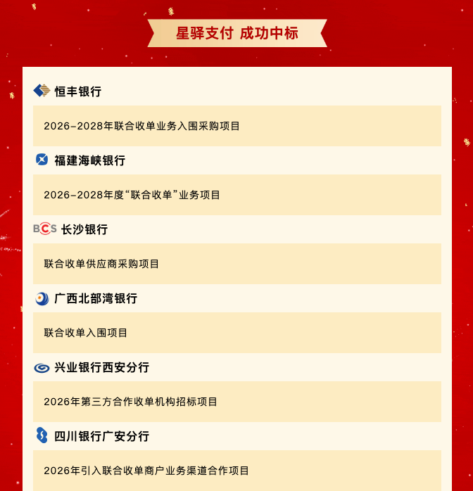 中标喜报 | “驿”路领先!星驿支付连续中标多项总行级合作项目,彰显行业标杆实力