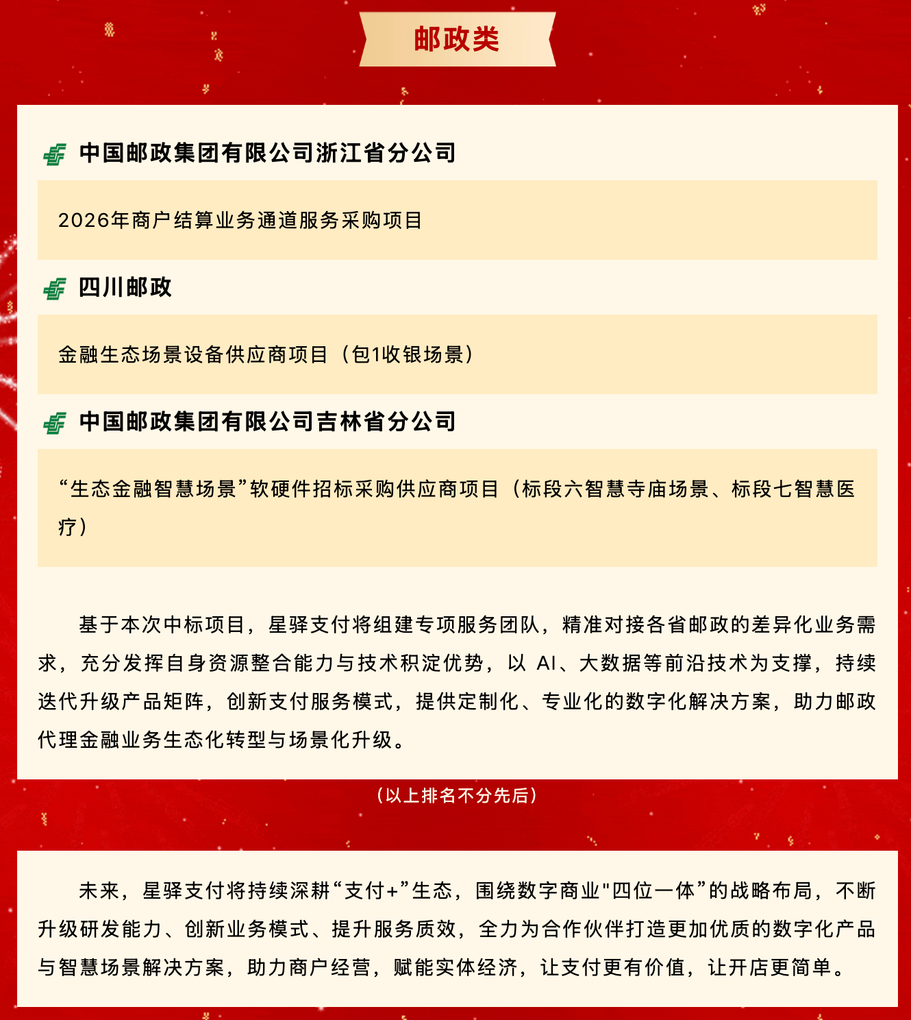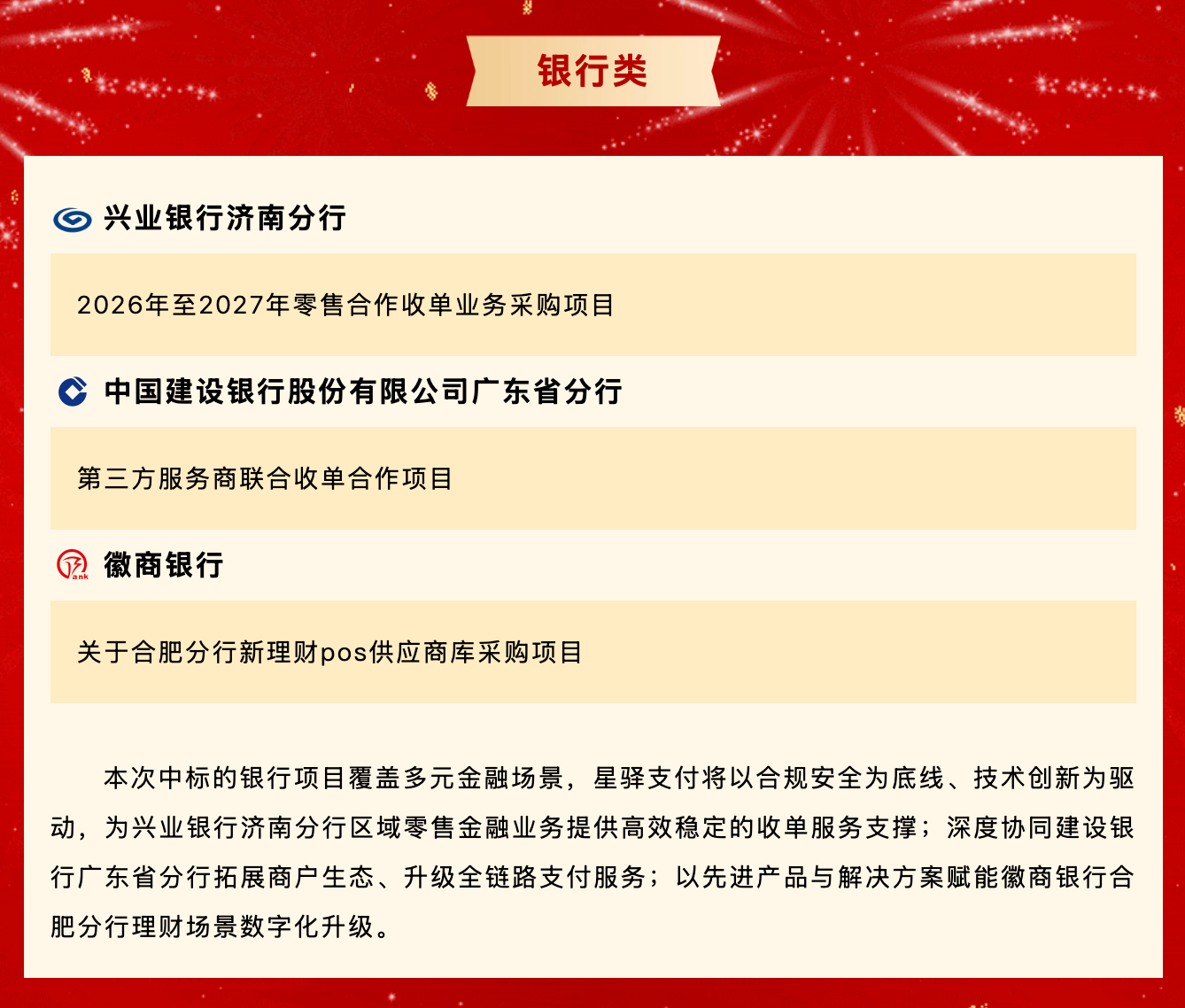 中标喜报 | 星驿支付接连中标多家主流银行、中国邮政核心项目,持续领跑数字商业赛道